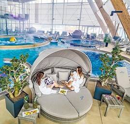 Luxusné a moderné ubytovanie s výhľadom na panorámu Vysokých Tatier, v dvojlôžkových izbách a apartmánoch, v cene ubytovania je zahrnutý vstup do všetkých zón aquaparku.