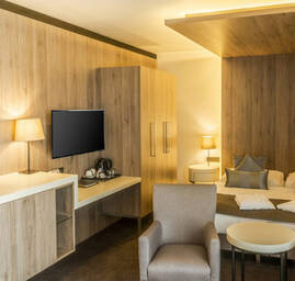 Luxusné apartmány, poschodové mezonetové izby v štýle podkrovia a klasické dvojlôžkové izby, v cene ubytovania je zahrnutý vstup do všetkých zón aquaparku.