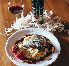 Bohatý výber mäsitých, bezmäsitých i múčnych jedál, rozmanité zeleninové šaláty, syry, výborné palacinky, nápoje, dobré pivo a lahodná káva. Počas celého roka môžete využiť aj štýlovú a v chladných mesiacoch vyhrievanú terasu.